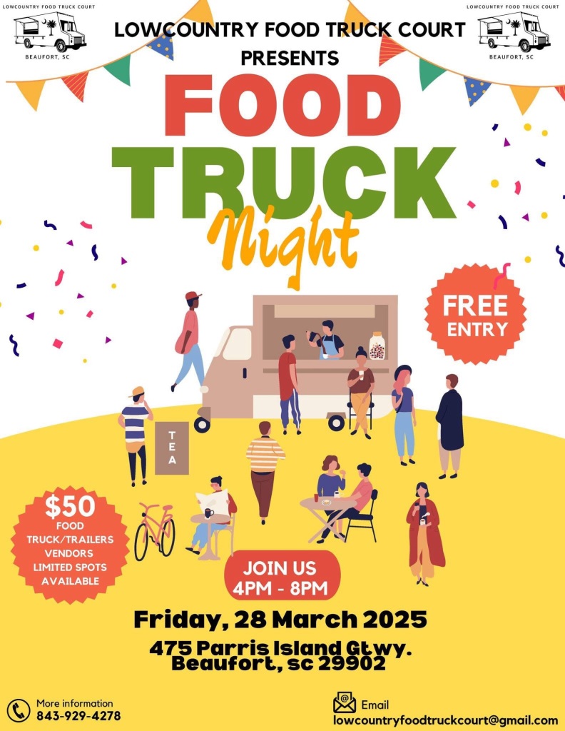 š Foodtruck Friday | 4-8 p.m. at the Lowcountry Food Truck Court š475 Parris Island Gateway