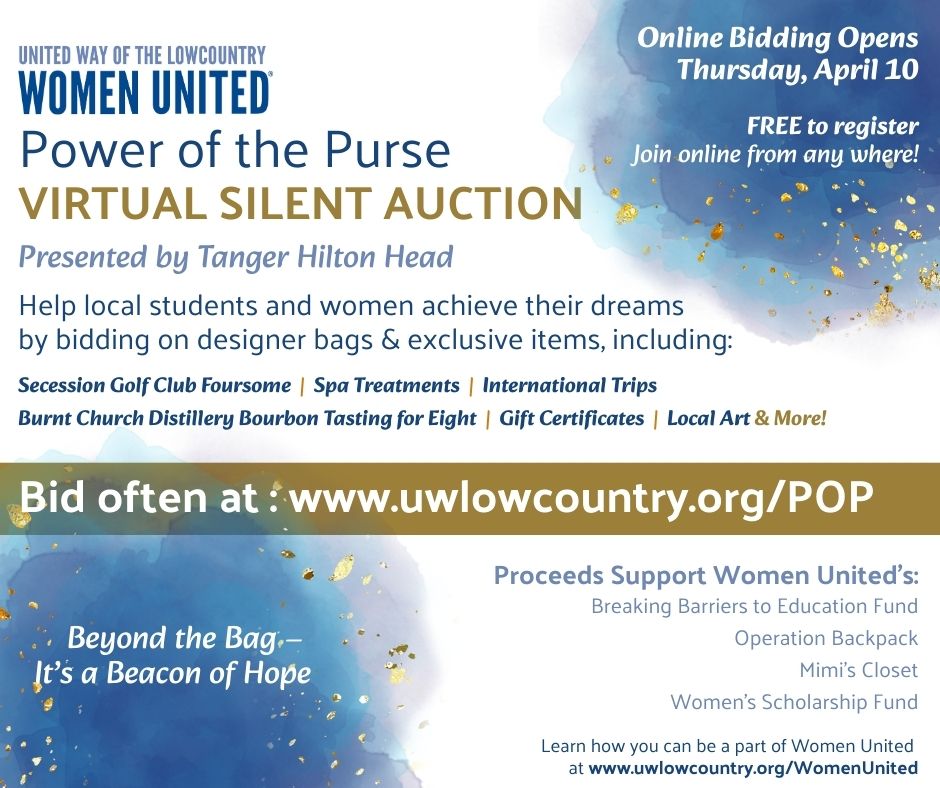 Start bidding Thursday, April 10 at uwlowcountry.org/pop—but hurry, the auction closes the night of the event!