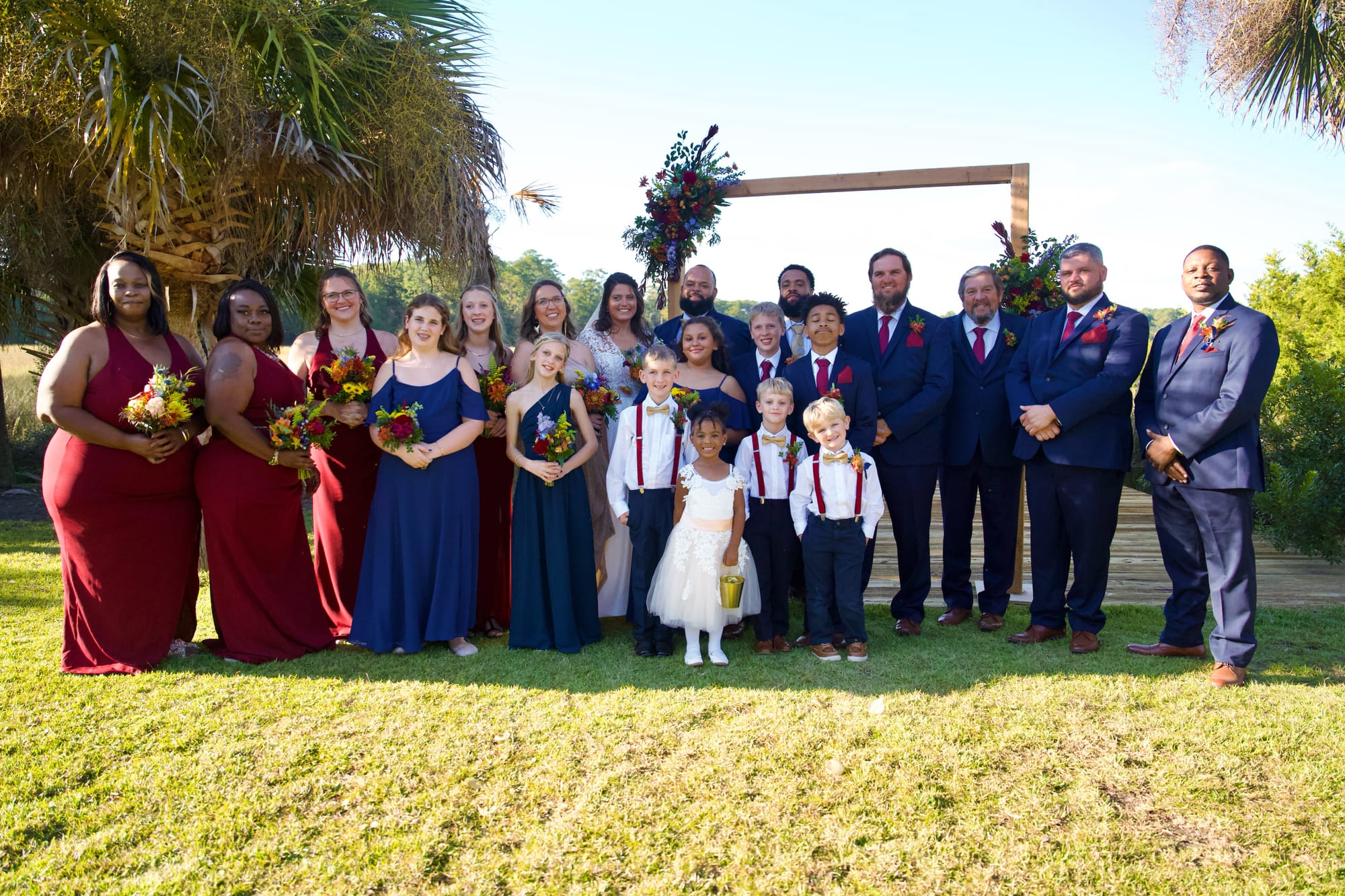 Their story is also a classic Lowcountry contrast to modern life. While nearly one in three committed relationships today begin with a swipe or a profile, this couple, both proud Beaufort natives whose family roots run deep in the area, met organically thanks to the matchmaking efforts of mutual friend, bridesmaid Kristen Masters. Their romance proves that the best connections are still often found close to home, rooted in shared community.