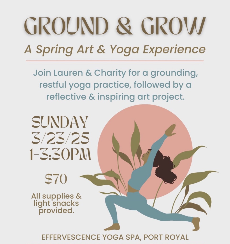 Sunday, March 23 - check out this grounding and restful yoga and art experience at Effervescence Spa in Port Royal. Details here.