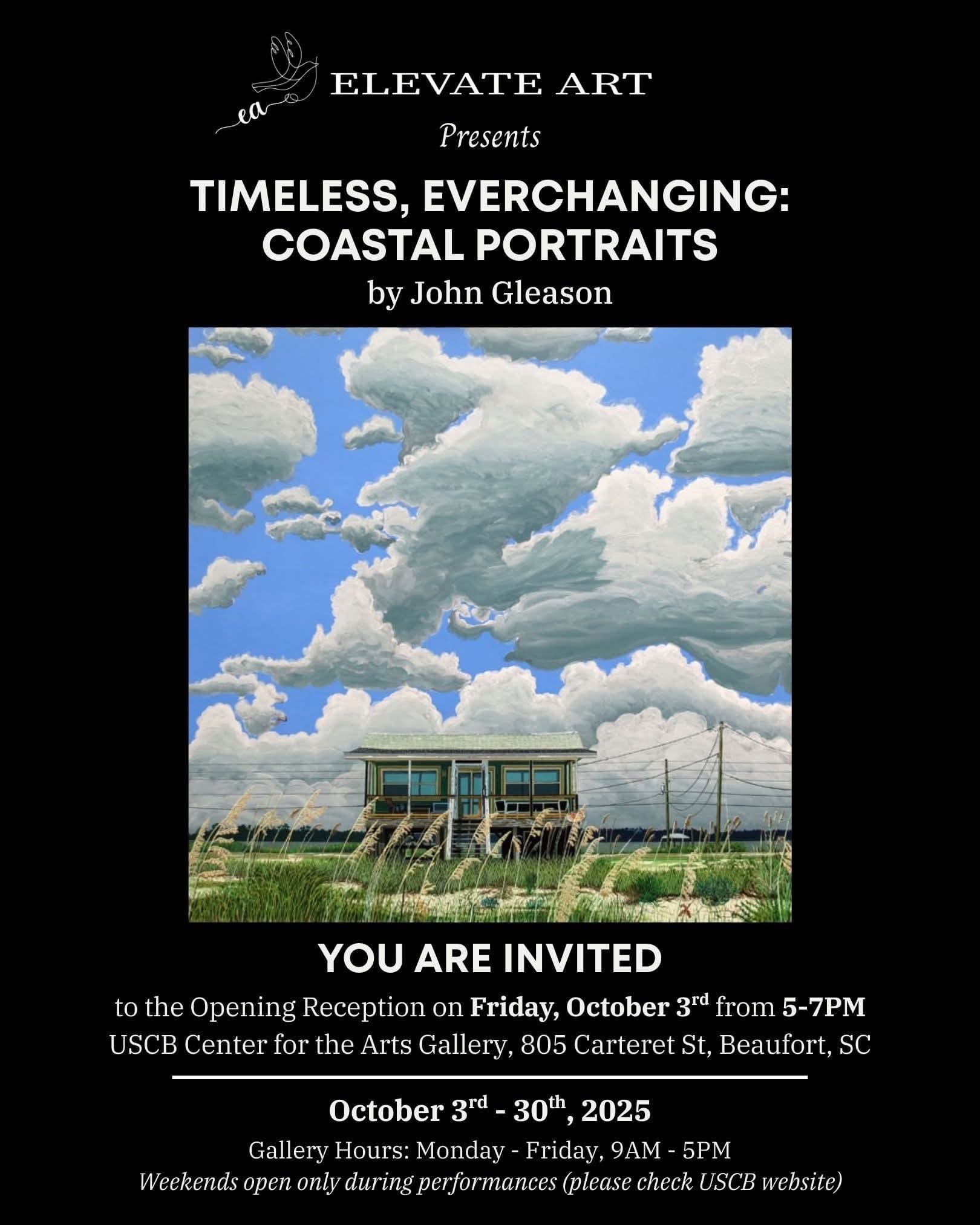 A new exhibit will be on display at the USCB Center for the Arts Gallery from October 3 to October 30, 2025. The show opens with a free reception on Friday, October 3 from 5–7 PM at 805 Carteret Street.