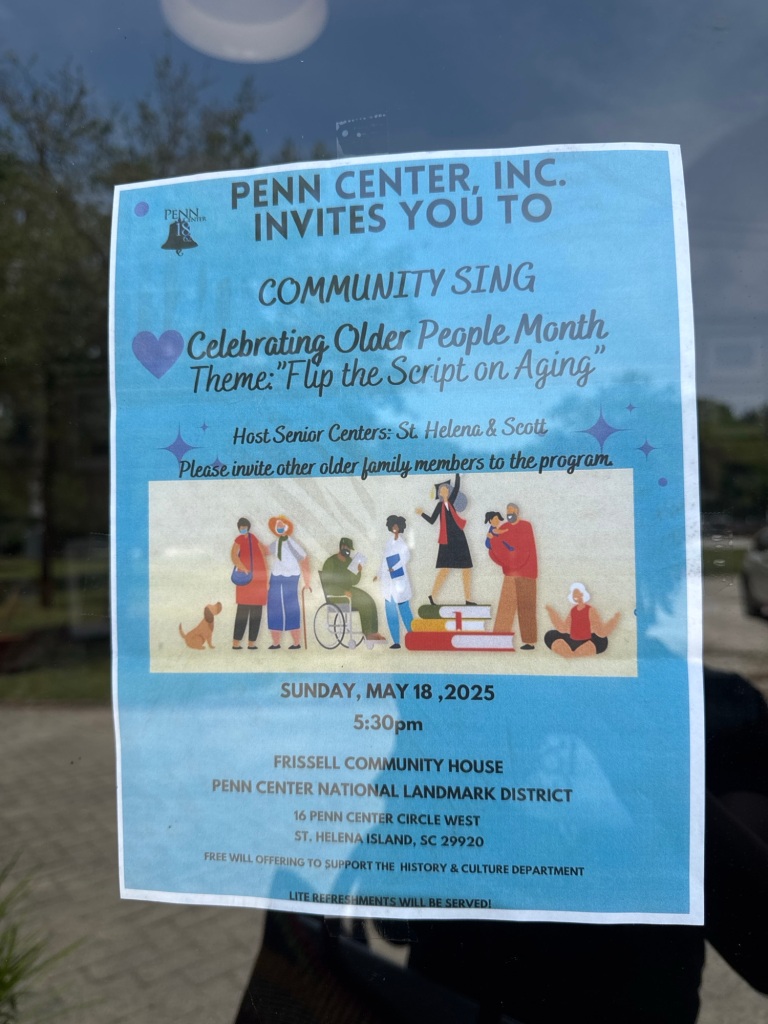 Celebrate Older People Month with a joyful evening of song and togetherness at the Penn Center’s Community Sing. This year’s theme is “Flip the Script on Aging.” Free will offering supports the History & Culture Department. Light refreshments served. 5:30 p.m., Frissell Community House, 16 Penn Center Circle West, St. Helena Island.