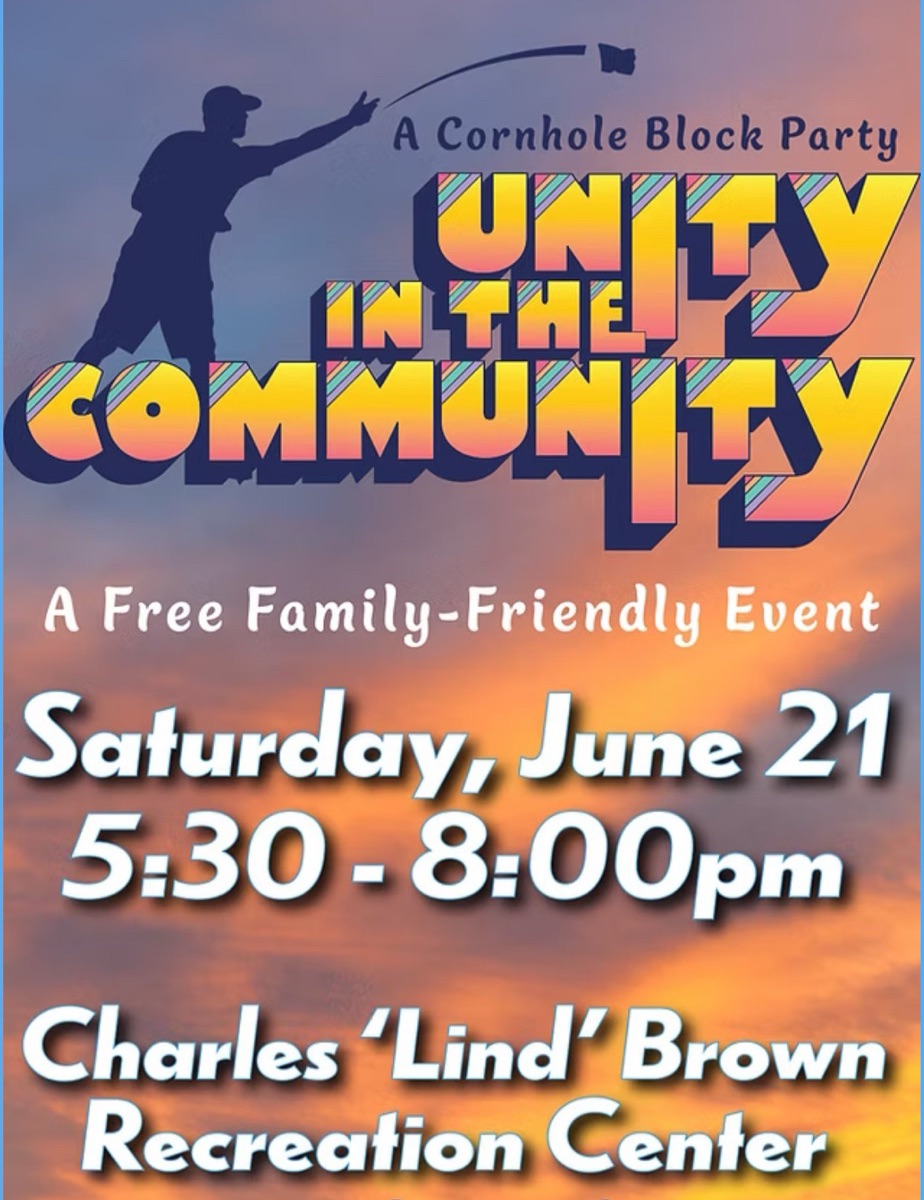 🎯 June 21: Unity in the Community Block Party | 5:30 PM – 8:00 PM 📍Charles Lind Brown Rec Center. Family-friendly cornhole block party with music, games, and neighborhood fun. Free and open to all.