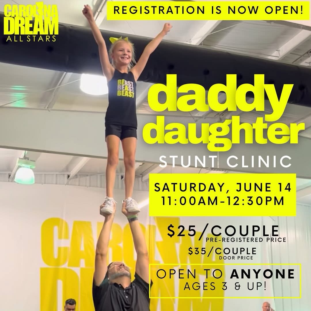 📣 June 14: Daddy-Daughter Stunt Clinic | Open to kids 3 and up head to Carolina Dream Allstars in Bluffton 📍1181 May River Road. Click here to register.