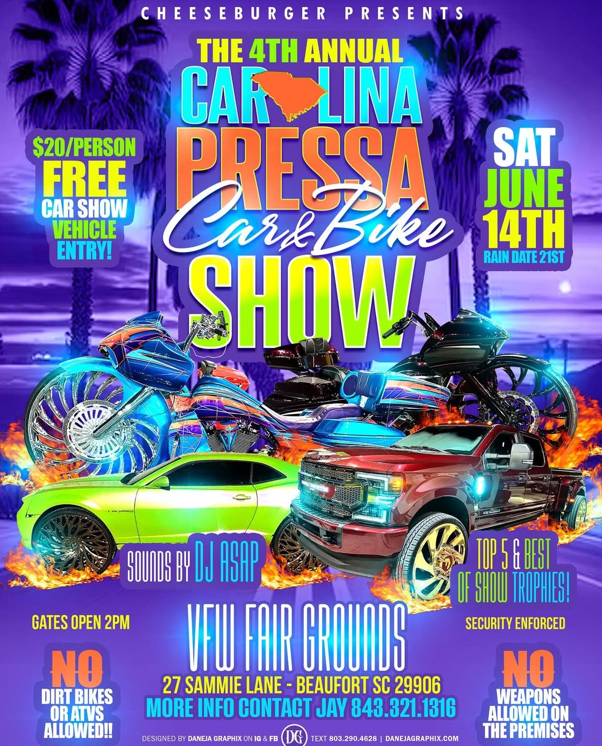 🏎️ June 14: Carolina Press Car and Bike Show | Gates open at 2:00 PM at the VFW Fairgrounds 📍27 Sammie Lane BFT. Admission is $20, free entry for car show vehicles. Prizes for the top 5 and best of show.