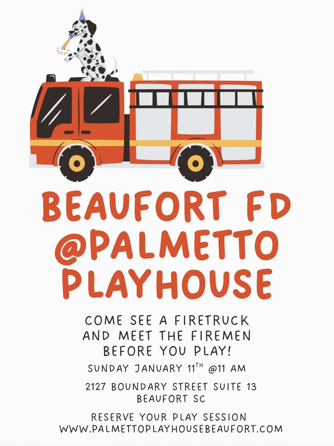 Before play sessions begin, families are invited to come see a real firetruck and meet the firefighters from Beaufort Fire Department. According to the event details, the firetruck visit starts at 11:00 am, giving kids the chance to see the truck up close and meet the firemen before heading inside to play. It is one of those simple, joyful moments that kids will talk about for weeks.