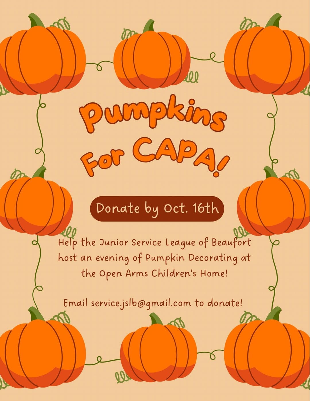 Oct. 1-31 | 408 Carteret Street, Beaufort | Each year the church hosts a pumpkin patch with a wide variety of pumpkins for sale. Proceeds support youth ministries.