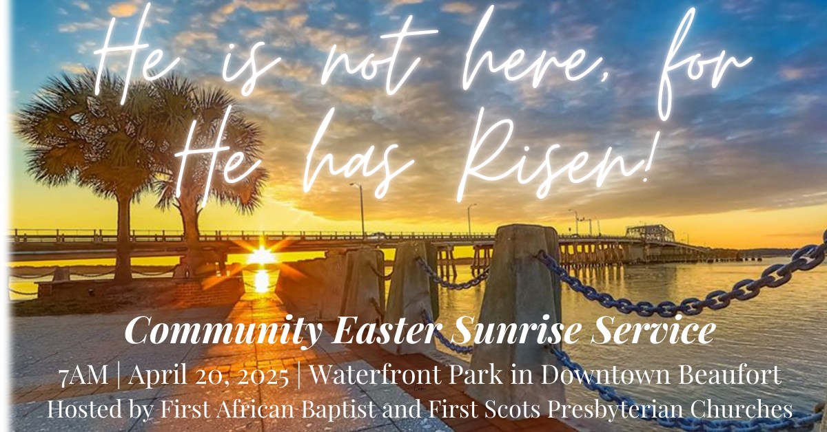 Community Easter Sunrise Service at the Henry C. Chambers Waterfront Park | 7AM Join many others from our community for a joyful celebration of the resurrection of Jesus Christ! Hosted by First African Baptist Church and First Scots Presbyterian Church. Details.