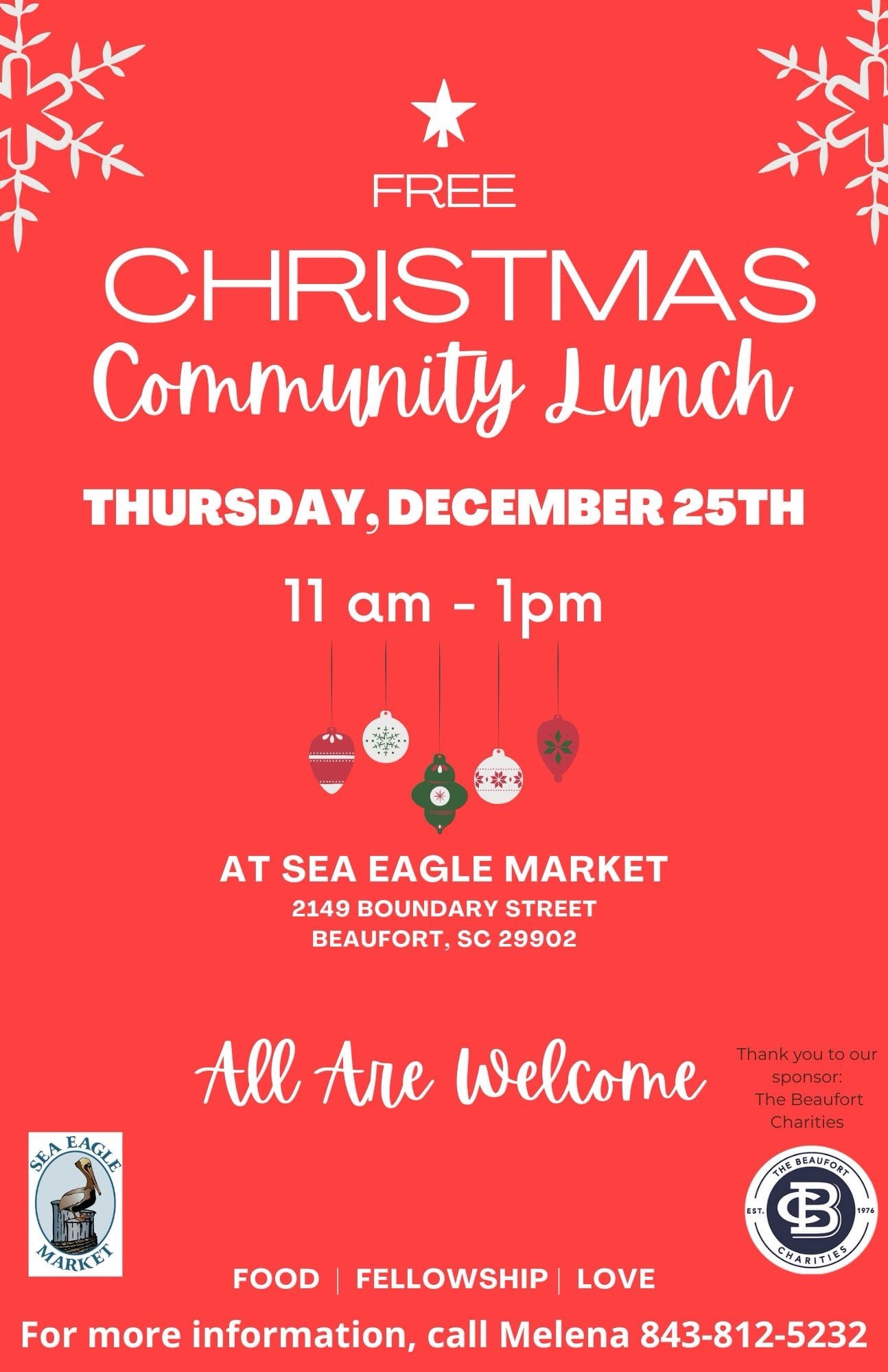 Rooted in food, fellowship, and love, this community lunch is proudly sponsored by The Beaufort Charities. Please help spread the word and invite anyone who could use a little extra holiday cheer.