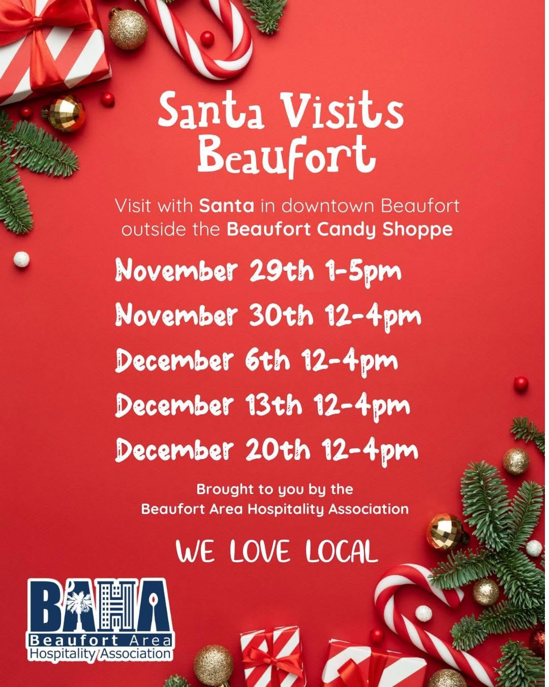 This annual tradition is brought to you by the Beaufort Area Hospitality Association. A fun holiday stop for families exploring downtown.
