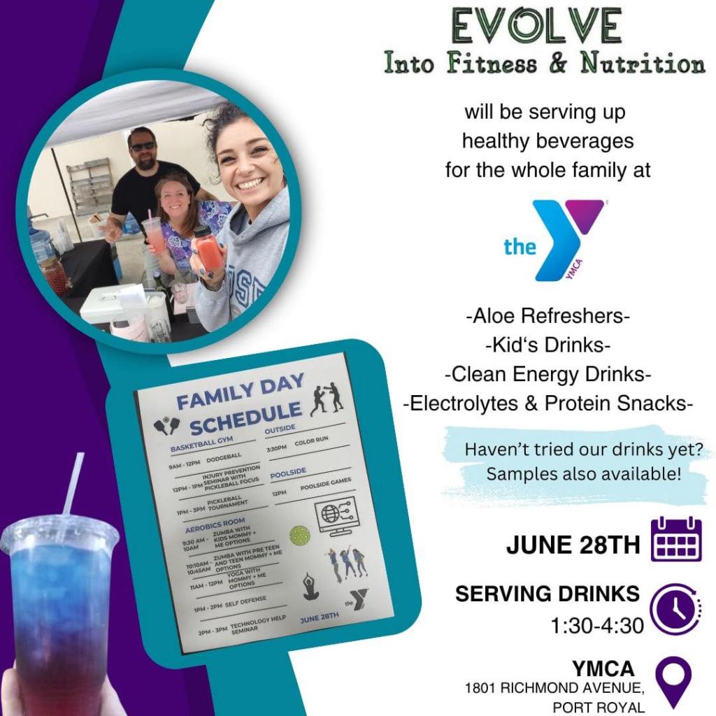 💧 Plus, from 1:30 to 4:30 PM, enjoy healthy drinks and samples from our friends at Evolve Into Fitness & Nutrition, serving up aloe refreshers, kid's drinks, clean energy options, and more.