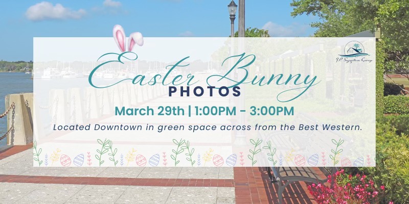 Hop on over for family photos with the Easter Bunny on Saturday, March 29, from 1–3 PM at Freedom Mall (the green space across from the Best Western in Downtown Beaufort). Enjoy festive drinks, Easter eggs, and a fun springtime atmosphere!
