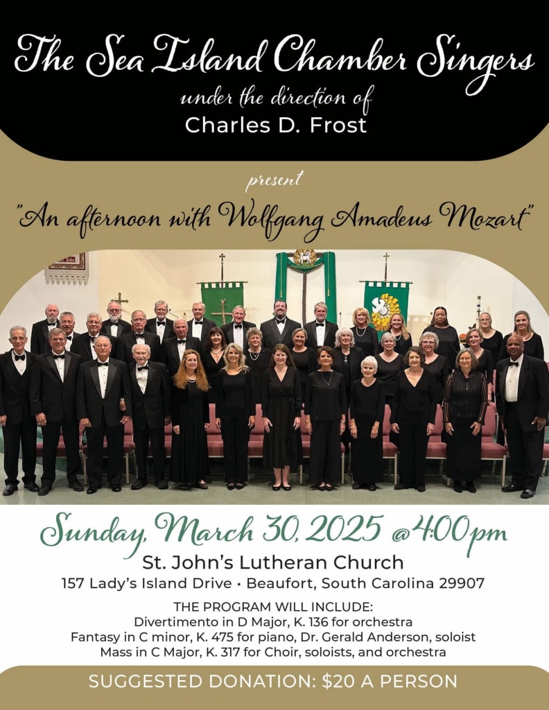 Experience an unforgettable evening of music as the Otterbein University Concert Choir performs at St. Helena’s Anglican Church. Under the direction of Dr. Gayle Walker, the choir has performed around the world, from Notre Dame Cathedral in Paris to Beijing Central Conservatory. Don’t miss this stunning vocal performance right here in Beaufort!