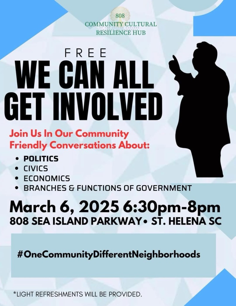 Thursday, March 6 at 6 PM at 808 Sea Island Parkway St. Helena. Details here.