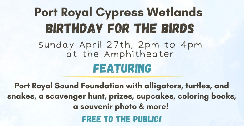 📍Amphitheater at Cypress Wetlands, Port Royal. Birthday for the Birds is an annual celebration of the beautiful winged residents that nest in the Cypress Wetlands each spring. This free, family-friendly event features fun educational activities for all ages. Come learn about Beaufort’s vibrant bird population and explore one of the Lowcountry’s natural treasures.