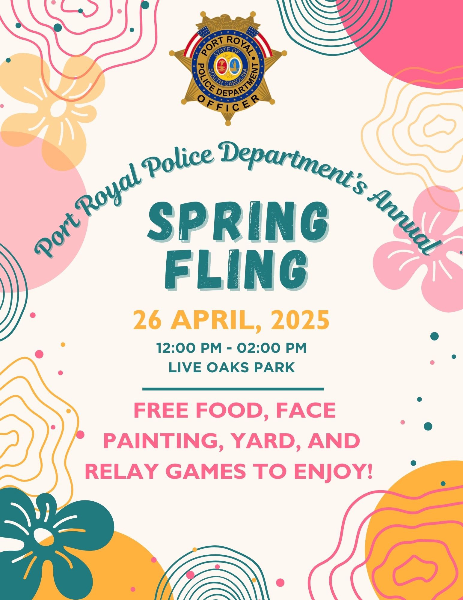🚓 Saturday, April 26 – Port Royal Police Dept Spring Fling– Join the Port Royal Police Department from noon to 2:00 PM at Live Oaks Park for their annual Spring Fling.📍904 14th Street Port Royal. The event features family-friendly activities, safety demonstrations, and a chance to connect with local law enforcement.