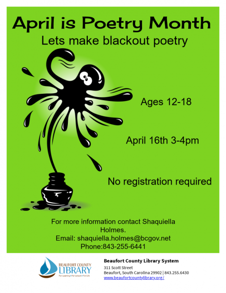 Tuesday, April 16 - National Poetry Month at Beaufort Library