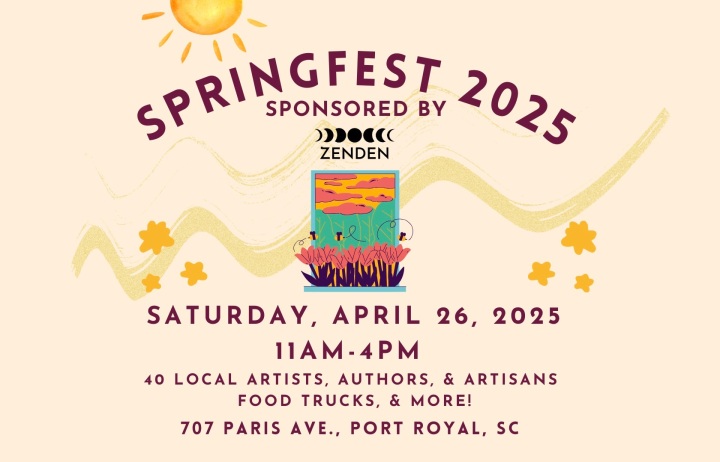 Saturday, April 26 – Springfest 2025 in Port Royal - Sponsored by ZenDen at 707 Paris Ave, Springfest celebrates the season with local vendors, live music, and activities for all ages. It’s a perfect way to enjoy the springtime atmosphere in Beaufort.
