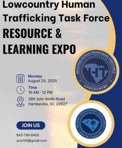 The Lowcountry Human Trafficking Task Force hosts a Resource & Learning Expo with education, support tools, and expert speakers. Free and open to the public.