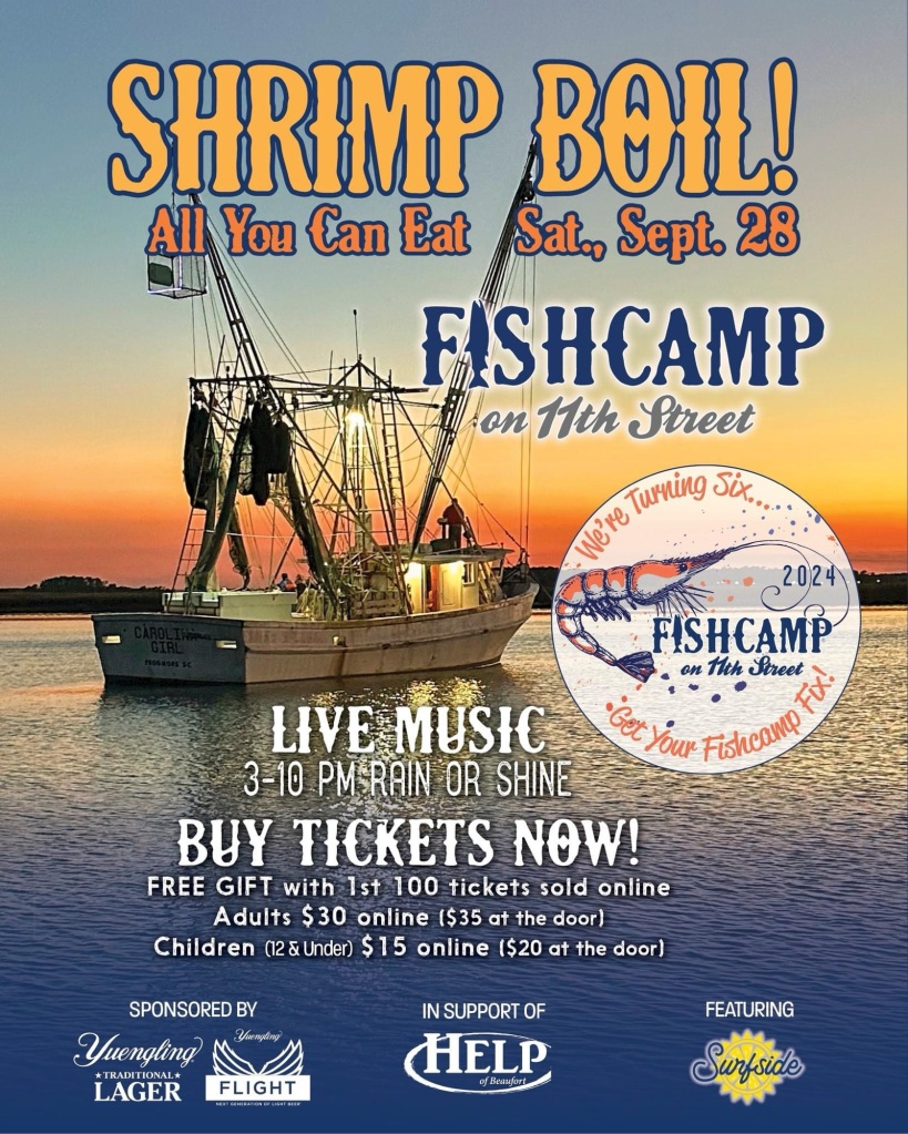 Fishcamp on 11th Street in Port Royal, SC, offers a relaxed waterfront dining experience with a menu that features fresh seafood, Southern-inspired dishes, and classic favorites. With its beautiful views of Battery Creek, outdoor seating, and laid-back atmosphere, it's the perfect spot for a casual meal, special occasion, or sunset cocktails. On Saturday, September 28 they’ll be hosting an all you can eat shrimp boil to celebrate the restaurant turning 6! 🎉 Click here to purchase tickets today.
