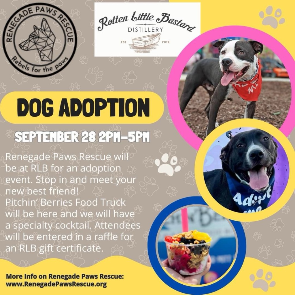 Join RLB Distillery and Renegade Paws Rescue for a dog adoption event on Saturday, September 28 from 2-5pm. Come out and meet these cute pups and meet your new furry friend! Pitchin' Berries Food Truck will be here and we will have specials for you in store. 2139 Boundary Street Unit 102. Details here.