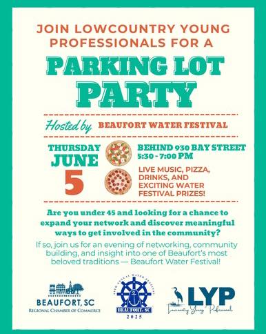 Thursday, June 5 | Join the Lowcountry Young Professionals for a Parking Lot Party sponsored by Beaufort Water Festival. 📍 Behind 930 Bay Street from 5:30-7:00pm.