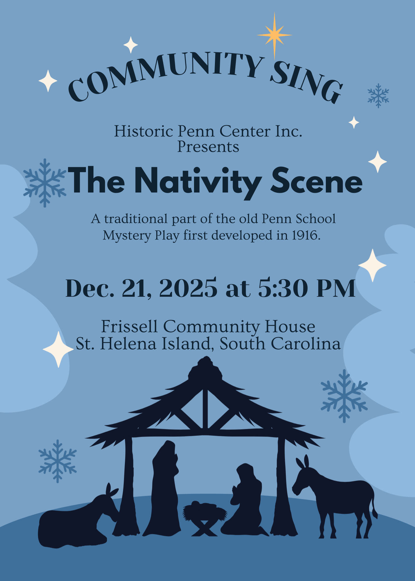 Penn Center will host its annual Nativity Scene, a treasured part of the old Penn School Mystery Play first developed in 1916.